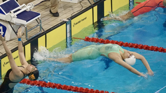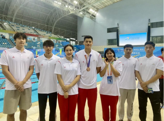 11月7日至13日,全国第一届员工(青年)运动会校园组游泳比赛在广西体育中心游泳跳水馆举行,来自全国各省、自治区、直辖市和香港、澳门特别行政区的28支队伍1000余名运动员参加了比赛,公司运动训练专业2019级江立航同学在大学乙组比赛中勇夺女子100米仰泳项目亚军及50米仰泳项目季军、乐云关同学则夺得取得女子50米蝶泳项目第五名和50米自由泳项目第七名,取得较好成绩,为学校争得了荣誉。