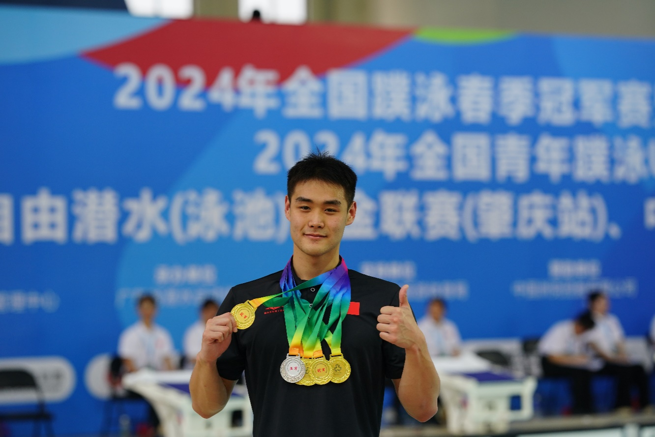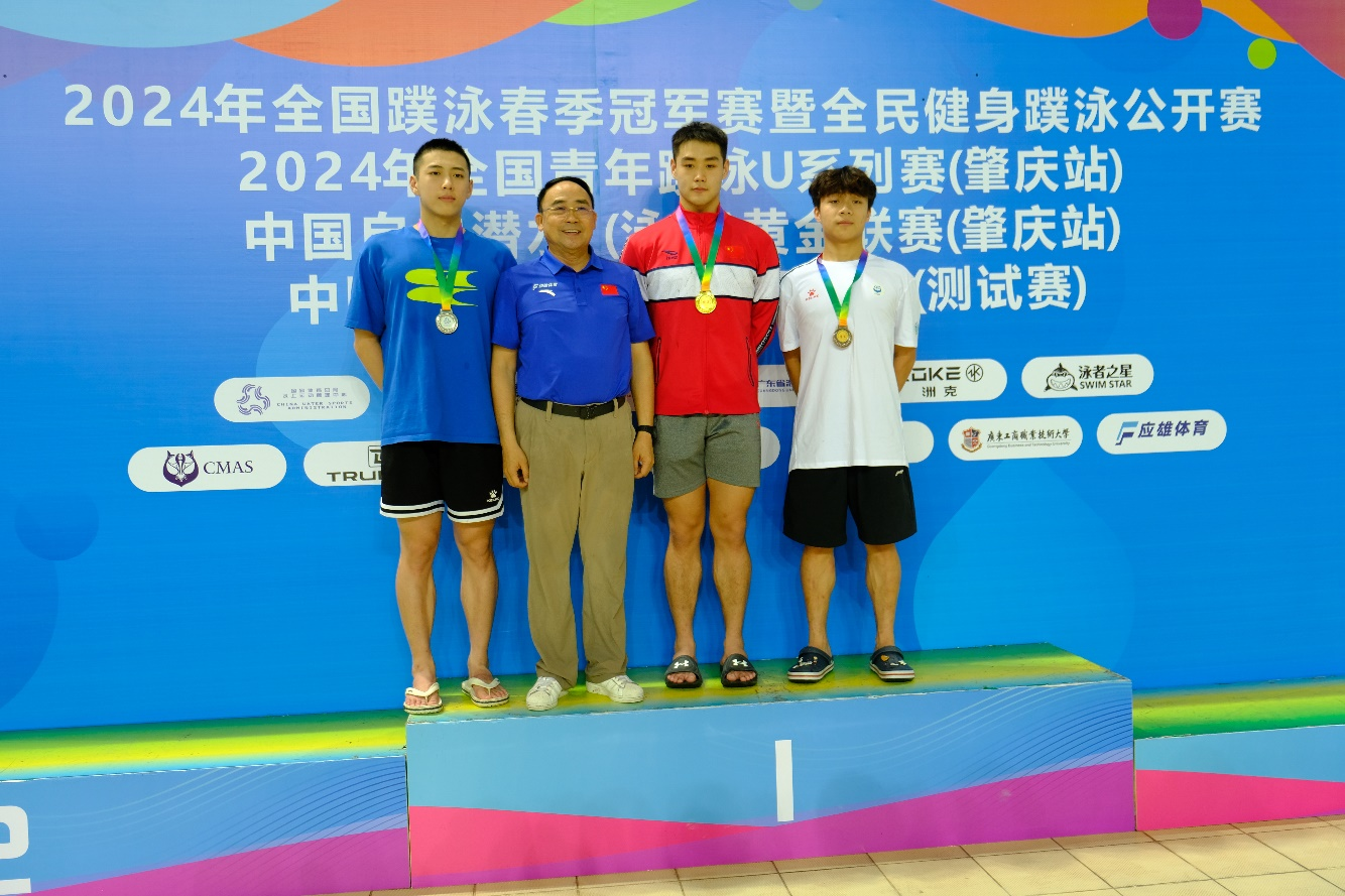 4月20日,在广东肇庆举行的2024年全国蹼泳春季冠军赛男子200m器泳项目比赛中,公司运动训练专业2023级关涵之同学以1′14″08的成绩打破世界记录!