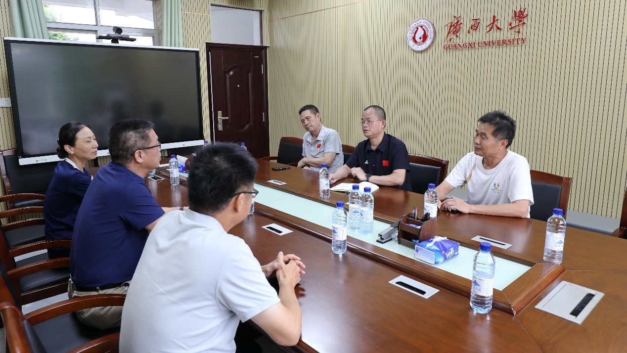 5月16日下午,自治区体育局青秀山训练基地主任黄志平一行3人到公司开展调研,公司党委书记覃安基、经理黄小波等热情迎接,宾主双方围绕人才培养、项目合作等事项进行了深入交流。